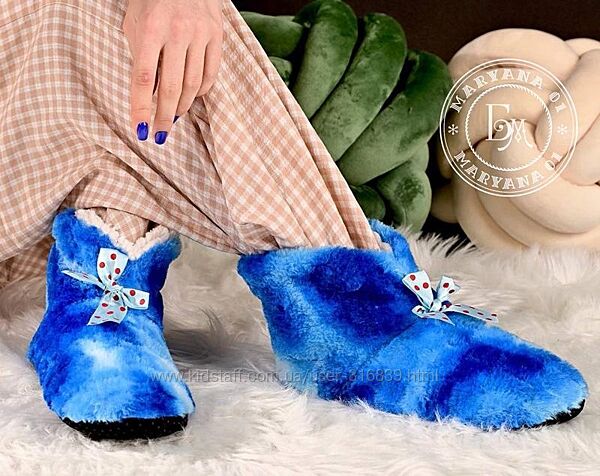 Подробное описание: Теплі домашні тапочки-чобітки / сині