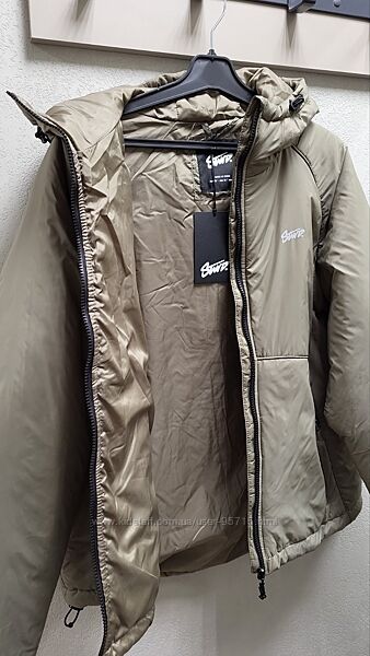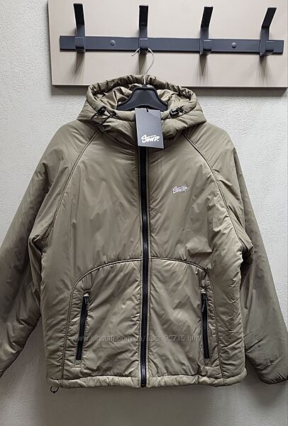 Легка пухова куртка з логотипом STWD, бічними кишенями, регульованим низом, капюшоном і застібкою на блискавку.