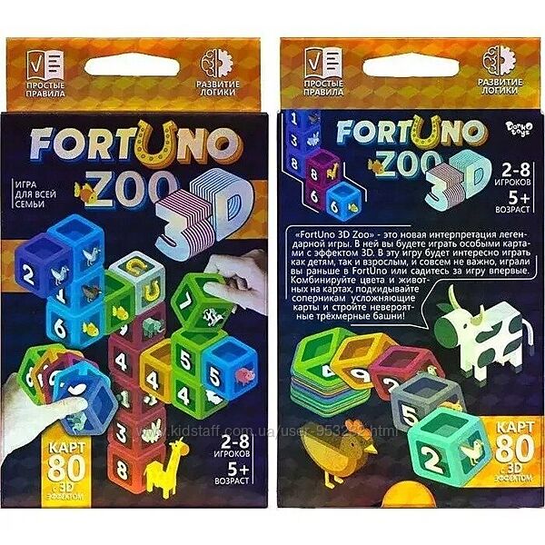 Игра "ФортУно Fortuno" производства Danko Toys (Украина).«ФортУно» - это динамичная, азартная игра с легкими и веселыми правилами. Скорость и непрерывное взаимодействие игроков друг с другом не дадут заскучать! В «ФортУно» могут играть как взрослые, так и дети. Правила очень простые: ваша основная задача - первым избавиться от всех карт и помешать сделать это другим игрокам. Вы можете использовать различные активные карты, чтобы оставить других игроков в игре. Можно положить пропуск хода, поменять направление хода игры и многое другое. Но самая главная карта в этой игре - «ФортУно», которая может, как привести вас к победе, так и наоборот!