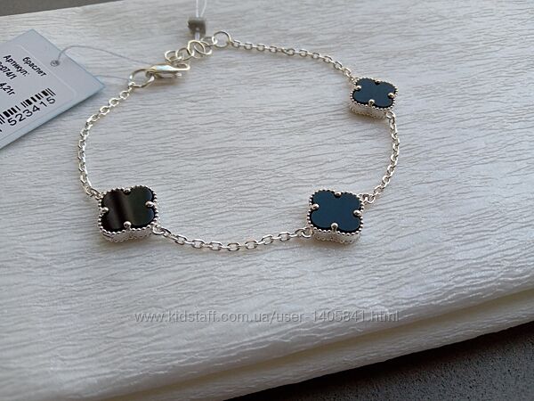 Подробное описание: Серебряный браслет Van Cleef Ван Клиф черный оникс клевер 3 цветка