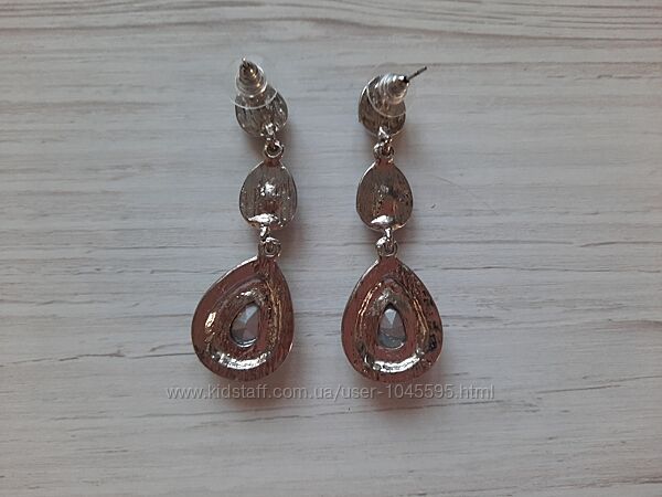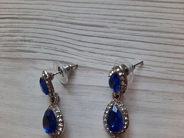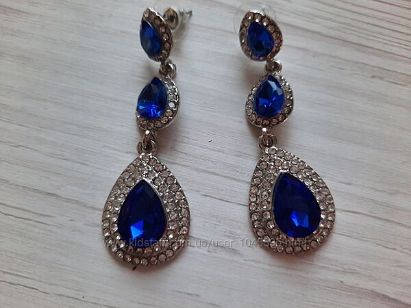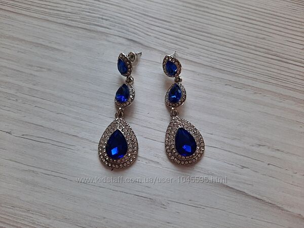 Сережки с синими стразами камнями бижутерия висюльки гвоздики вечерние
