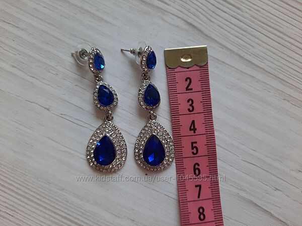 В наличии новые сережки с синими камнями бижутерия окантовка из мелких серебристых камней застежка гвоздики размер 5.5 см подарочная коробочка в подарок
