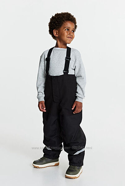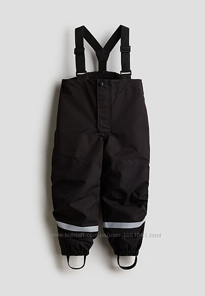 Полукомбінезон - унісекс , колір - чорний від H&M з м´якою підкладкою з вітрозахисного , водовідштовхуючого функціонального матеріалу. . Штани мають еластичні регулюючі підтяжки, молнію з застібкою і кнопкою і еластичну резинку под ногами. Світловідштовхуючі окантовки на двох ногах . Підкладка.- синтепон .РІСТ 98-104 ( довжина без шлейок -66 , шаг 42 - см талія-31 см ),110 -116 ( довжина без шлейок -73 , шаг-47 см талія-33 см ), 122 -128 ( довжина без шлейок -83 , шаг -53 см талія- 35 см )