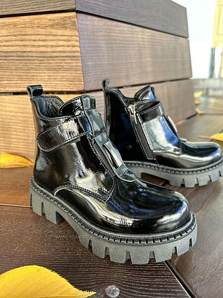 Подробное описание: Демісезонні чобітки з лакованої натуральної шкіри р.32,33,35,36