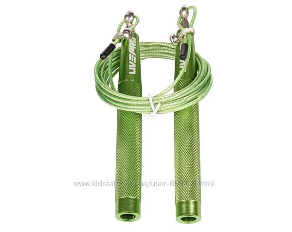 Скакалка швидкісна LivePro Speed Jumprope — професійний тренажер для тренувань, зміцнення серцево-судинної системи, підвищення витривалості та загальної фізичної форми в професійному та аматорському спорті. Спеціальне обертове з´єднання дає змогу робити до 240 обертів за хвилину.Довжина кабелю регулюється. Ця скакалка ідеально підходить для кардіо- та функціональних тренувань, розминок у єдиноборствах, боксі. Кабель надзвичайно міцний і довговічний завдяки високоякісному матеріалу.