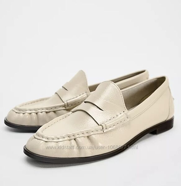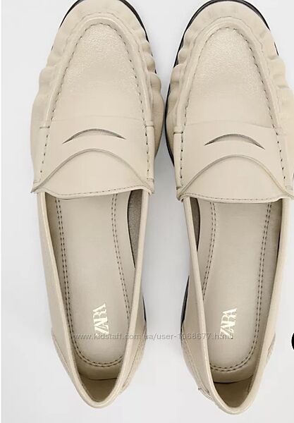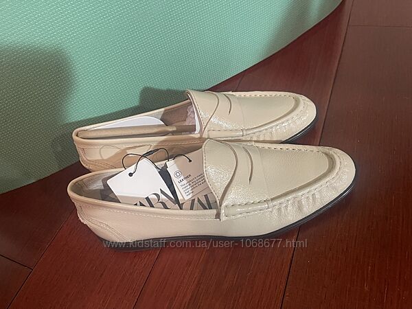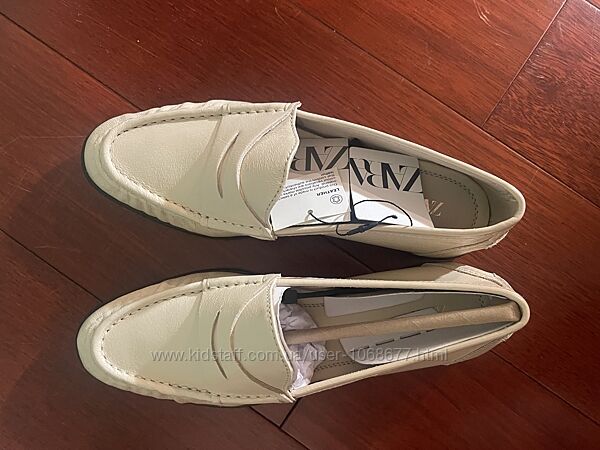 Эффектные мокасины Zara. Размер 38 (стелька 24 см). Натуральная кожа. Цвет - светлый беж. Отличный вариант для классического образа. Пересылаю после мин предоплаты (остальное - наложенный платеж НП или УкрП).