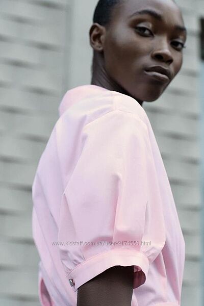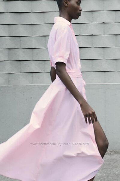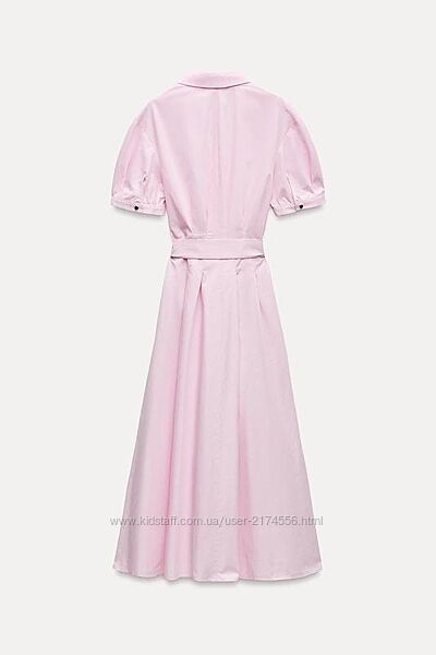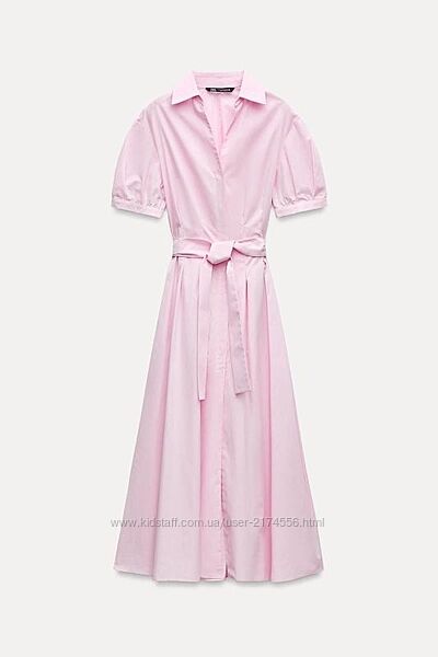 Подробное описание: Роскошное поплиновое платье рубашка zara под пояс в нежном цвете