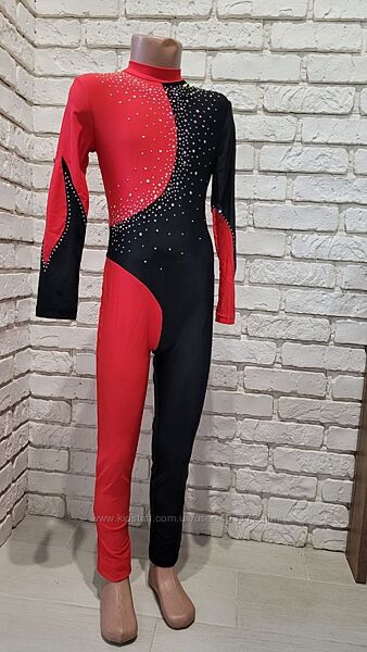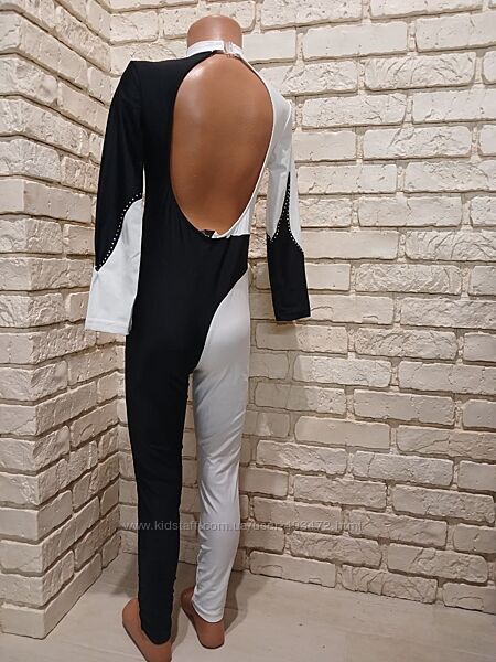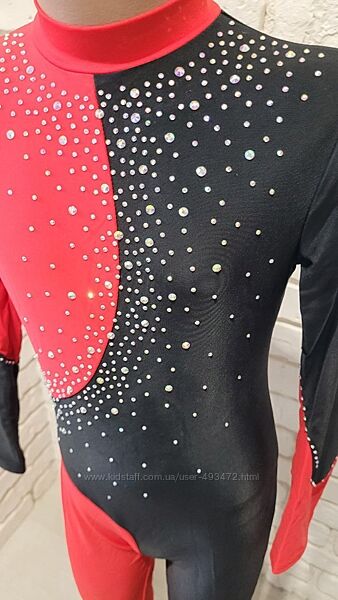 Для змагань та виступів з повітряної гімнастики, акробатики.Новий комбінезон із біфлексу з відкритою спиною. Без вирізу під п´ятку. Прикрашен мерехтливими стразами АВ.