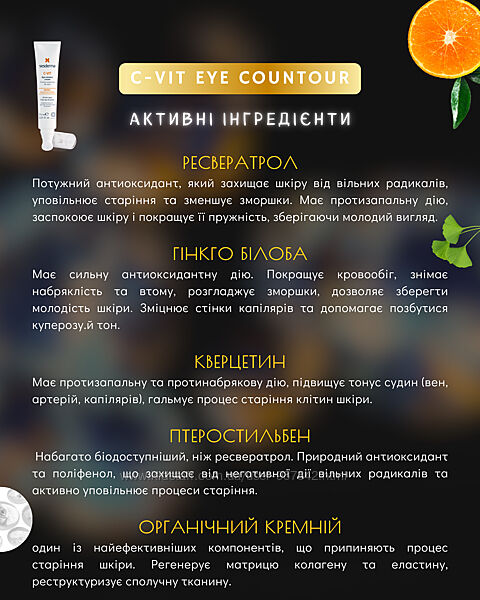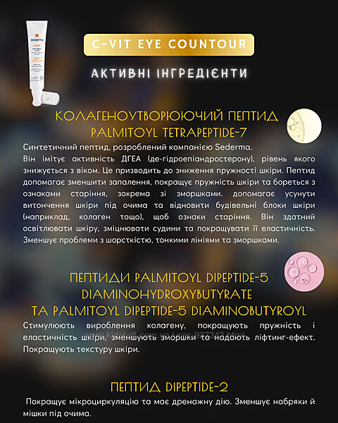 💡 Основні переваги: ✔️ Яскраво освітлює, зволожує, омолоджує та відновлює шкіру навколо очей