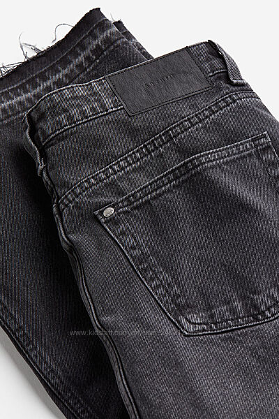 Висока талія із застібкою на блискавку та гудзик, необроблений край із високим розрізом спереду.