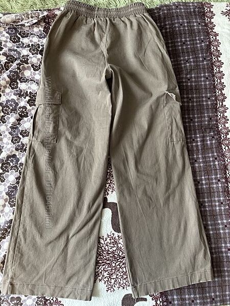 Продам котонові широкі штани Tair в гарному стані.Розмір 164,але дивіться по замірам,так як ми носили раніше. Склад:97%котон,3%еластан. Колір темніший ніж на фото і світліший ніж на моделі.Якість чудова.Котон плотний. Довжина-94см шаг-69,5мм пояс резинка-30см ПБ-47см При купівлі пересилаю любим способом за рахунок покупця.Без повернення! Дивіться інші оголошення! При купівлі 2-х б/у речей,3-я-бкзкоштовно))