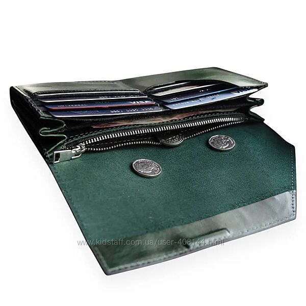 Гаманець жіночий шкіряний Grande Pelle Festa 513391 смарагдовий (шкіра глянцева)✔️ Матеріал: натуральна шкіра гладка. Вид шкіри за способом обробки – глянець. Усередині всі кишеньки та відділення з натуральної шкіри.