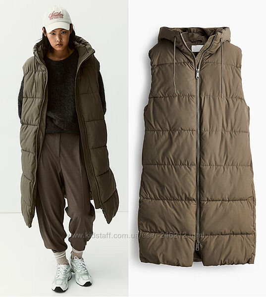 Подовжена стьобаний жилет H&M з нової колекції!Стібаний жилет довжиною до коліна з тканого матеріалу зі стьобаними швами.