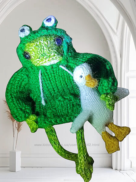 Подробное описание: Іграшка дитяча мяка вязана жабеня, гусь обіймашка