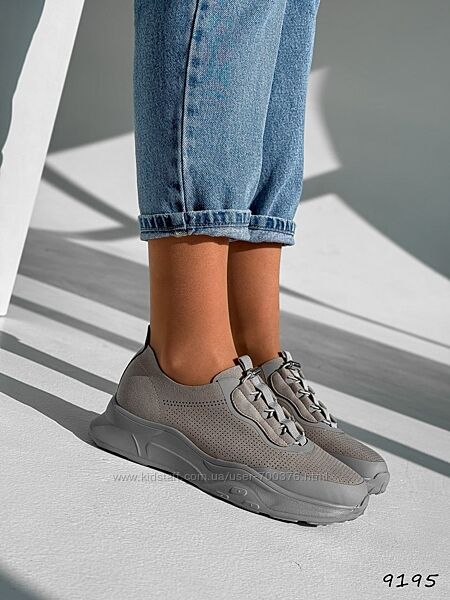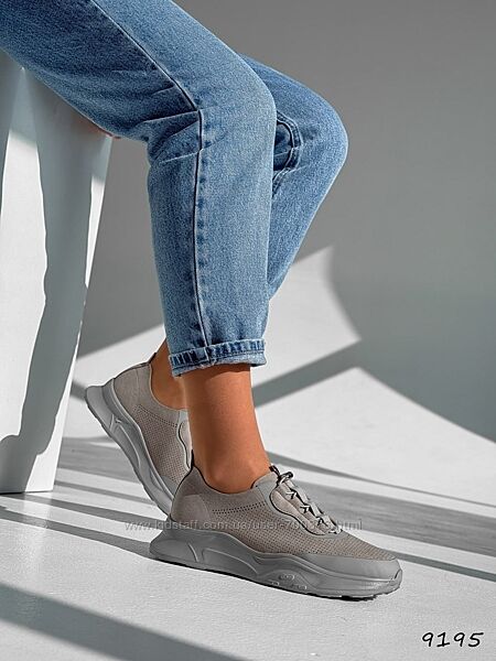 Кросівки Misty, натуральна замша з наскрізною перфорацією, сірі/джинс