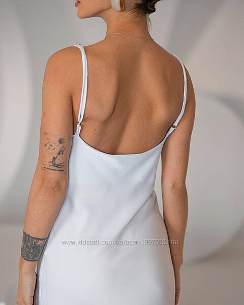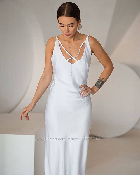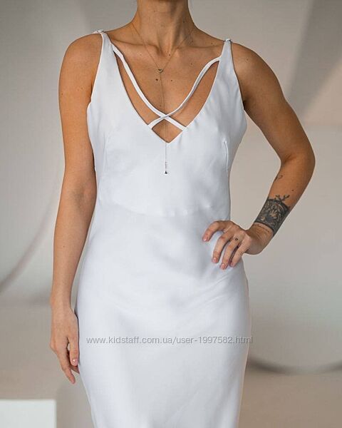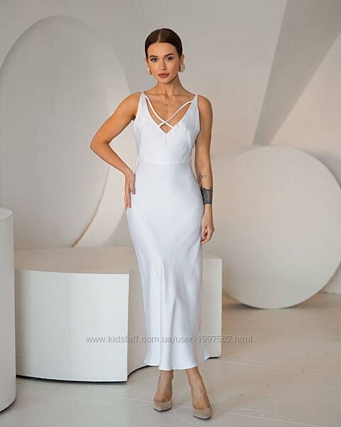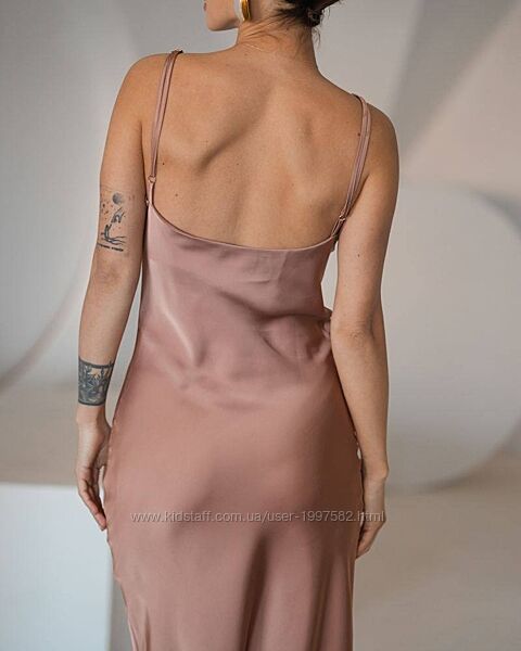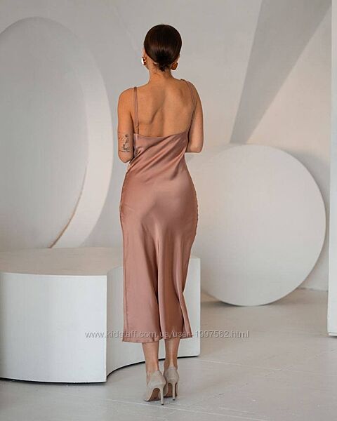Подробное описание: Вечірня сукня міді атласна комбінація на бретелях біла коричнева