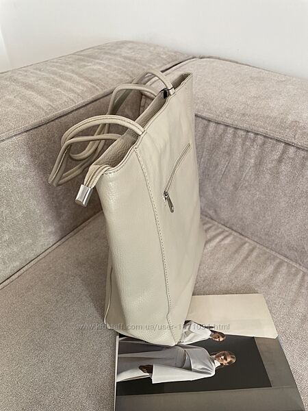Ручки довгі, сумку зручно носити на плечі. Велика, вміщає формат А4.