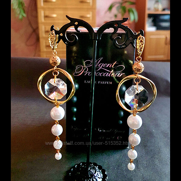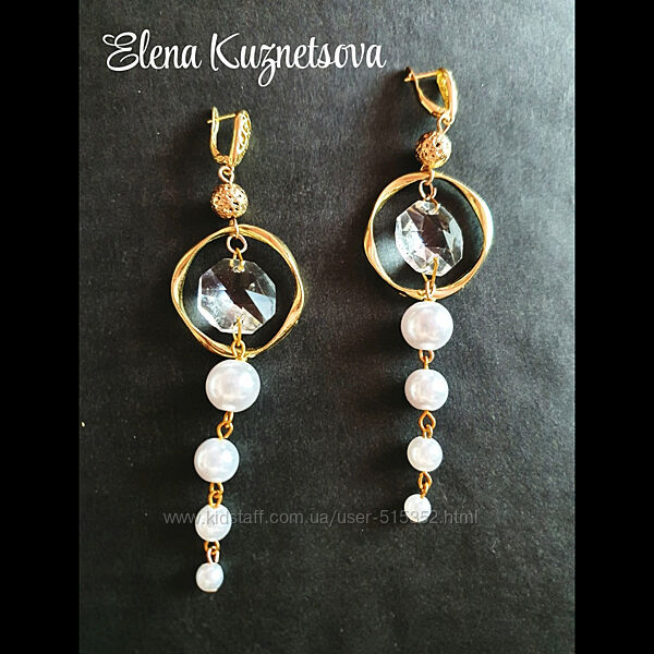Шикарные серьги ручной работы! Очень нежные удлинённый сережки с прозрачными, стеклянными кристаллами и белым искусственным жемчугомс золотистыми элементами. Очень стильные лёгкие сережки подчеркнуть Вашу красоту и женственность! Подойдут на любое торжество и сделают Вас неотразимой в любой обычный день.Мой инстаграм elenakuznetsova_ya