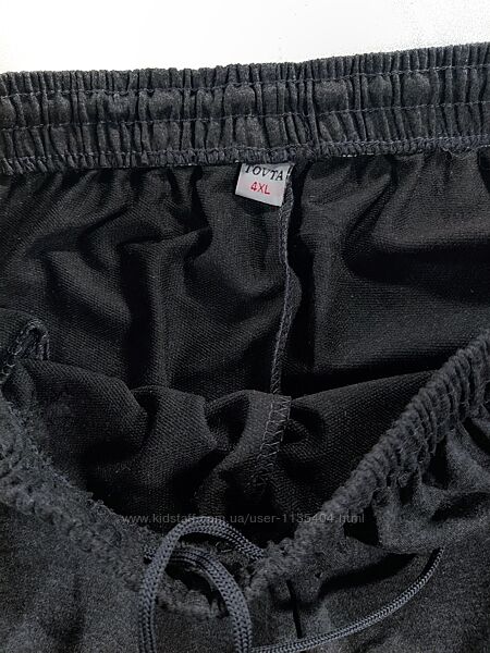 Розмір 60 (5XL) Ширина пояса 41/63 см.(напівобхват, максимально розтягнута гумка). Ширина стегон 66 см.(напівобхват). Довжина штанів 110 см.