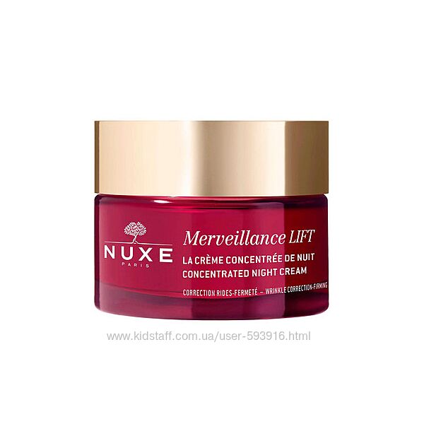 Концентрований нічний крем Nuxe Merveillance Lift – це зміцнюючий засіб для обличчя, який заповнює зморшки та розгладжує шкіру завдяки унікальній комбінації активних інгредієнтів. Саме під час сну, вночі, наші клітини оновлюються, і наша шкіра найбільше готова до догляду, який ми їй пропонуємо. Цей зміцнюючий нічний крем працює, поки ви спите, розгладжуючи шкіру, заповнюючи зморшки. Після пробудження шкіра регенерується та розгладжується. Ніч за ніч вона зміцнюється, усуваються зморшки та заломи. Засіб проти зморшок створено на основі Chlorella Vulgaris, мікроскопічних зелених прісноводних водоростей, що мають унікальну здатність до регенерації. Крапля олії мікроводоростей, отримана за допомогою інноваційної екологічно чистої технології, концентрує омолоджуючу ефективність 4 мільярдів активних клітин. Рекомендований для всіх типів шкіри.