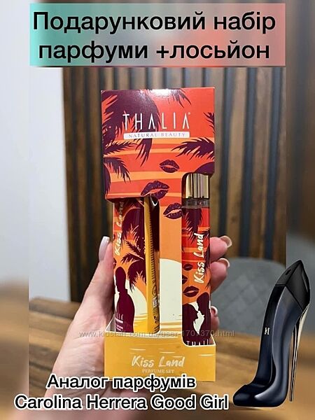Жіночий парфумований набір (EDP+лосьйон для тіла) THALIA Kiss Land, 35/50 мл💋🌺 Ретельно підібрана орієнтально-квіткова композиція парфумованої води Kiss Land принесе вам таке ж задоволення, як і улюблені пісні.