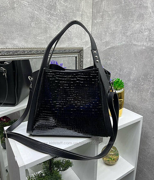Женская сумка черного цвета из искусственной кожи — стильный и практичный аксессуар для повседневного использования. Сумка имеет три самостоятельных отдела. Два отдела закрываются на кнопки, средний отдел закрывается на молнию. Средний отдел имеет два отдела и перегородку на молнии, а также два дополнительных кармана для мелочей, один из которых на молнии. Размер сумки 31х25х12 см, что делает её вместительной и удобной для хранения всех необходимых вещей. На лицевой стороне сумки имеется лакированная вставка под рептилию, что делает сумку стильной. Эта сумка идеально подходит для работы, учебы или прогулок, сочетая в себе стиль и практичность. Не упустите возможность приобрести стильную и функциональную женскую черную сумку из искусственной кожи! Закажите эту сумку прямо сейчас и наслаждайтесь стилем и комфортом каждый день!