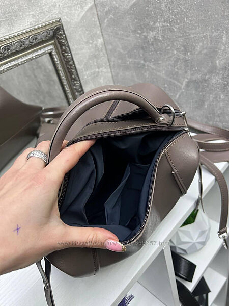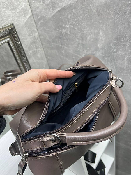 Сумка изготовлена из искусственной кожиСумка имеет два отдела на молнии. Внутри сумки два дополнительных кармана для мелочей, один из которых на молнии