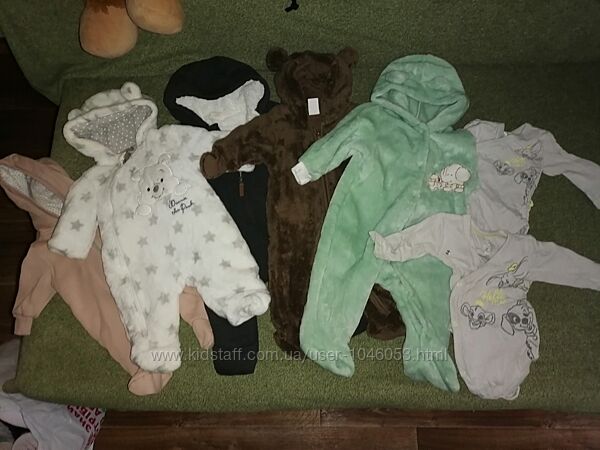 Подробное описание: Пакет вещей, комбинезоны, человечки теплые h&m, c&a 56 см, 62 см, 68 см