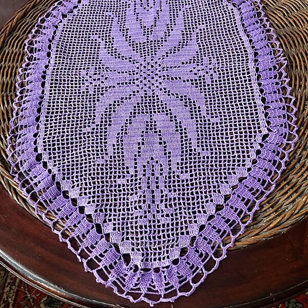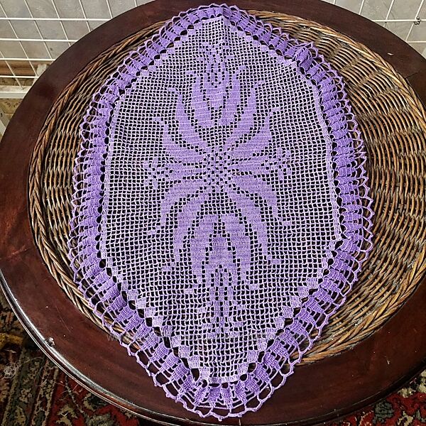Хлопковая салфетка лилового цвета филейного кружева крючком Орнамент в стиле французской вышивки Размер 55х35 см Для ценителей ручной работы .Для декора столешницы или других творческих проектовДругие объявления продавца