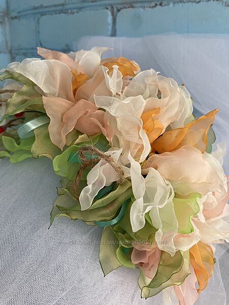 До вашої уваги представлений віночок в ніжно рожевих кольорах як сама весна! У віночку 5 квітів, зроблених з легкого шифону декількох кольорів! Додатково прикрашений штучними ягідками а тонкою стрічкою! Серединка квітки прикрашена чорними тичинками! Основа віночку широкий міцний обруч, стандартного розміру! Без резинки та стрічок! 🌺🌸💛🩵Другие объявления продавца