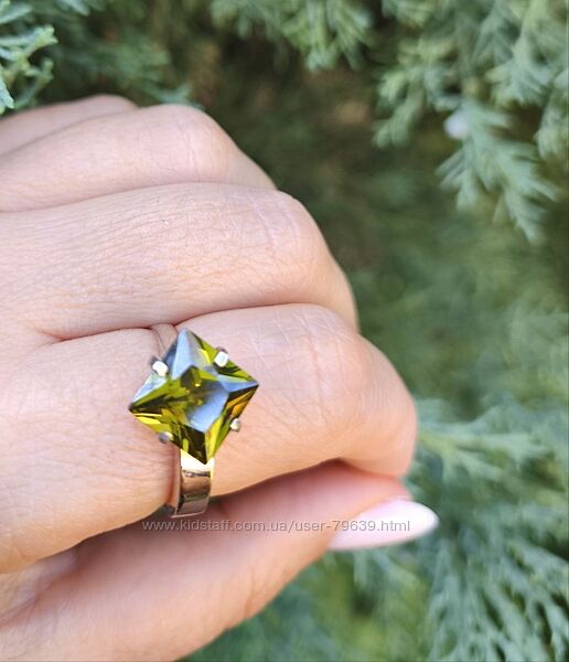 Фото 5-7.Срібна каблучка з бутилочниім квадратним цирконом і золотою накладкою.
