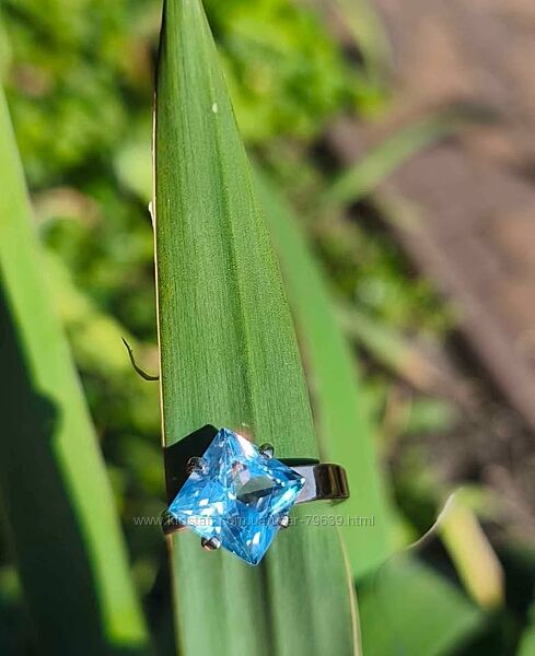 Фото 8-10. Срібна каблучка з квадратним блакитним цирконом і золотою накладкою.