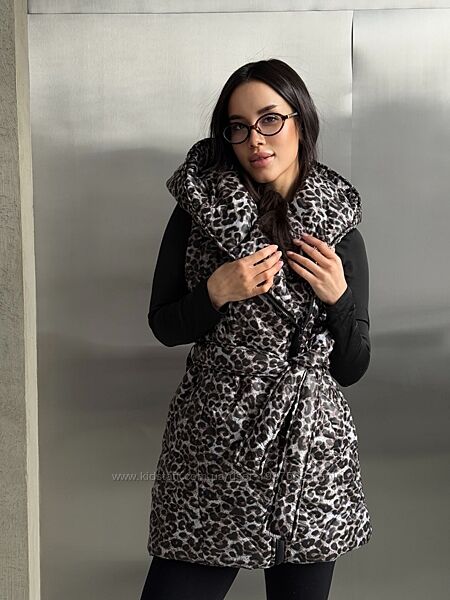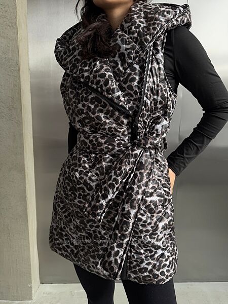 Чудова якість! Подовжений жилет на запах. На замочку. Є кишені, капюшон, пояс