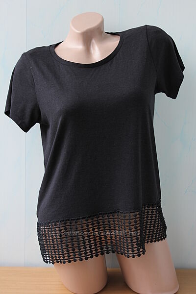 Футболка з мереживом originals з чудовим складом: 51% бавовна, 49% віскоза Базова, чудова річ на спекотні літні дні. На бирці розмір 10, цем. пог- 47, поб- 51, довжина по спинці — 58 см.