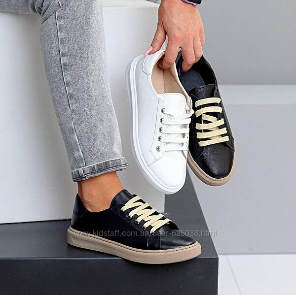 Подробное описание: Жіночі кеди Натуральна шкіра колір чорний/бежевий/білий
