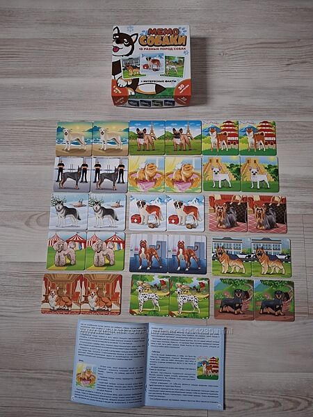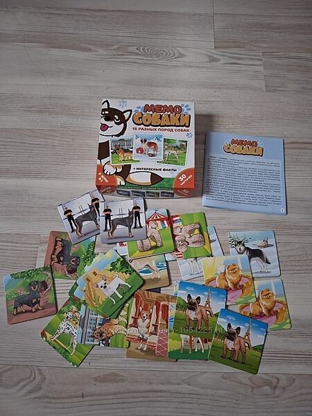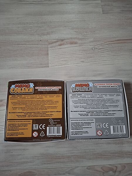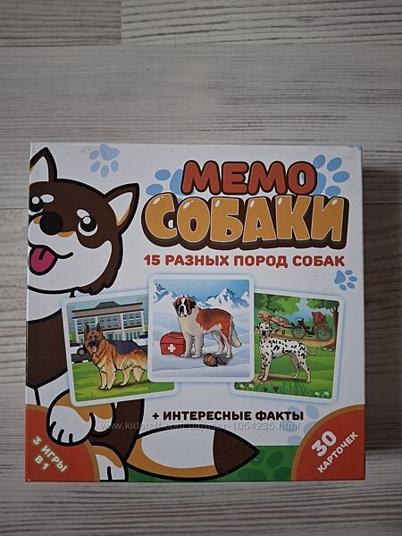 Продам интересные, качественные, яркие мемо игры "Собаки" и "Кошки".1. Мемо "Собаки". В игре есть не только карточки с разными собаками, но еще и детальное описание пород и даже любопытные факты про четвероногих друзей. Ребенок узнает, какие бывают породы - большие и маленькие по размеру, одни собаки пригодны для службы у полицейских и поисковиков, а есть и специально выведенные декоративные диванные пушистики. Кроме того, что игра тренирует память, она еще и развивает интеллект, расширяет кругозор. Внутри коробки вы найдете не одну игру, а целых три. Кроме классической мемо есть описание еще трех сюжетов как можно взаимодействовать с одними и теми же карточками. В комплект входят 30 карточек с собачками, всего 15 парных изображений. Возрастная категория 3+. Цена: 200 грн.