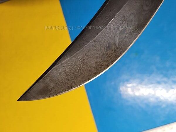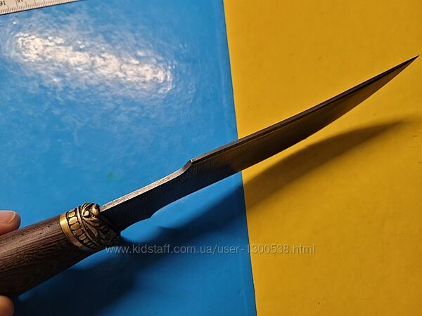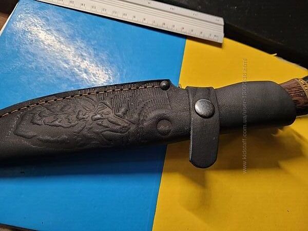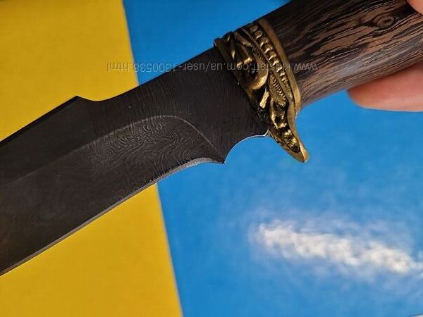 Нож "Волк" с ножнами, дамаска сталь, береза, больстер и тильник - бронза.Характеристики