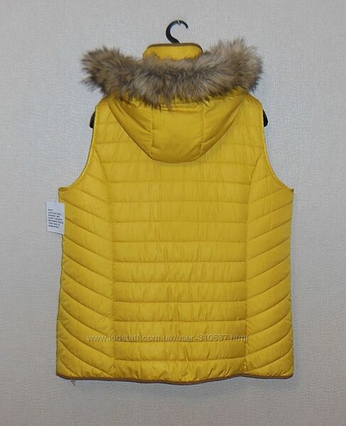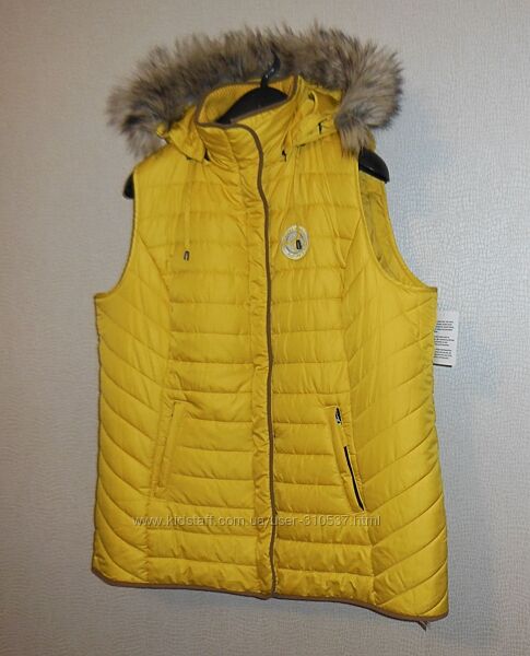 Фірмова жіноча безрукавка/жилет (застібка-змійка + захисна планка з кнопками) з капюшоном (зйомний/змійка) та кишенями під змійками німецького бренду Sheego – практична і надзвичайно якісна річ!!! Можна за окрему договірну ціну придбати фірмову шапку у одному кольорі з безрукавкою (на фото).Розміри по бірці: EURO/50, UA/58-60, RO/58/60, GB/24 та інші (див. заміри).