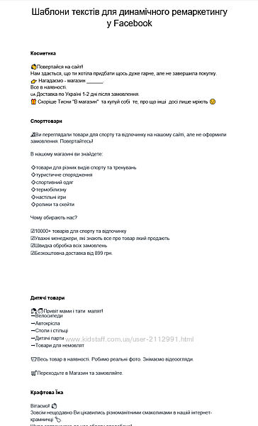- Рекламна аудиторія “Перегляд товару”, “Додали в кошик”, “Здійснили покупку”