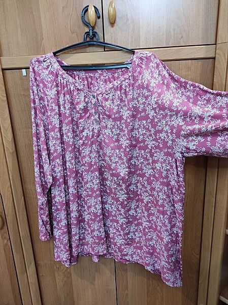Блуза з довгим рукавом, 100% бавовни (тканина не розтягується). Розмір: підходить на - 54/56. (бірки зрізані) Довжина - 80 см, Довжина рукава від горловини - 74 см, ПІГ - 74 см, ПІ по низу - 78 см, Біцепс - 27 см. Стан нової речі не носилась!