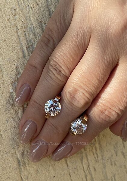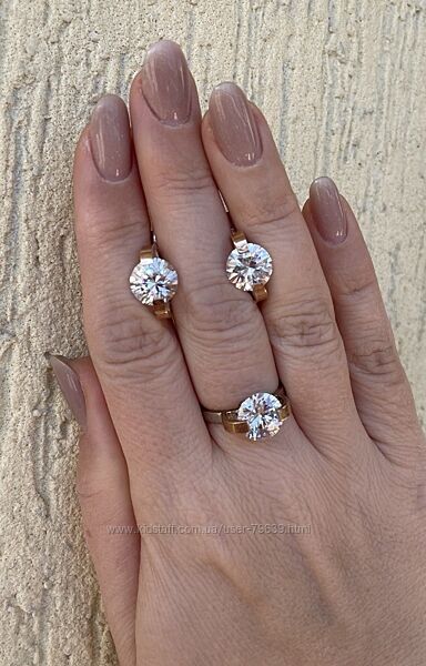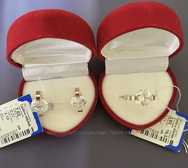Подробное описание: Срібні сережки і каблучка з кубічним цирконієм і золотими вставками