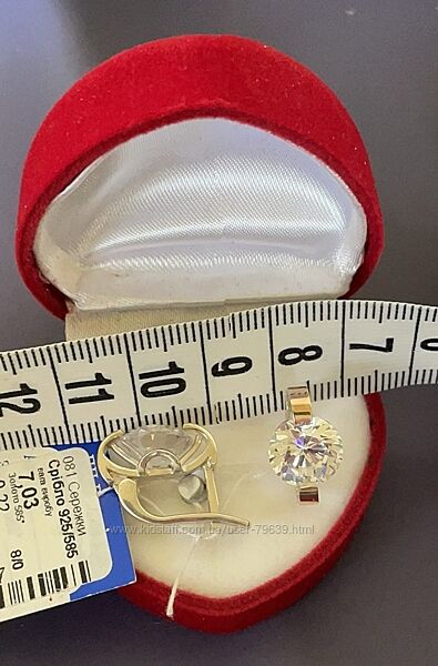 Срібні сережки з кубічним цирконієм і золотими вставками (виробництво Україна).Срібло 925, золото 585 проби, бірка, пломба.