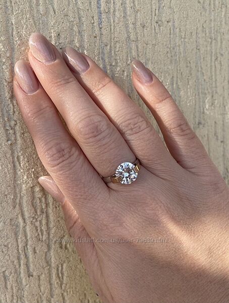 Срібна каблучка з кубічним цирконієм і золотими вставками (виробництво Україна).