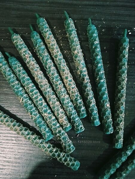 Высота тонкой свечи стандартная, как для моих толстых свечей с травами из вощины, - 13 см. Диаметр – от 10 до 13 мм. Диаметр варьируется, потому что свечи сделаны не на станке, а кручены руками мастера.