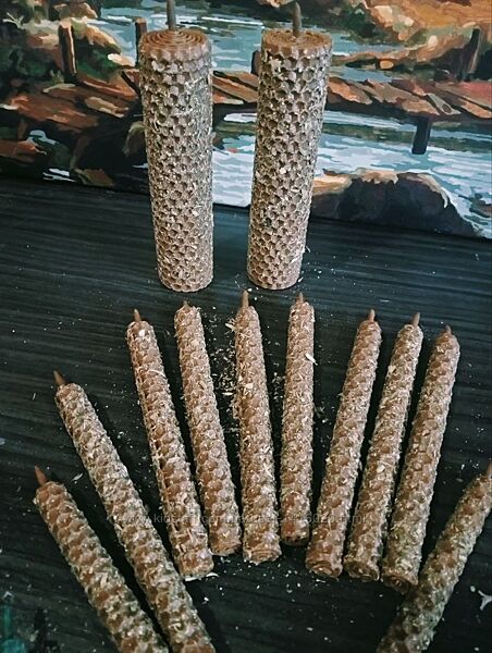 Свечи изготовлены из натурального экологически чистого воскового материала – пчелиной вощины.
