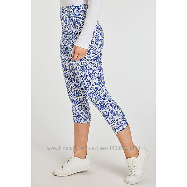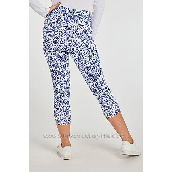 Якісні укорочені бавовняні леггінси з квітковим принтом, батал р.24