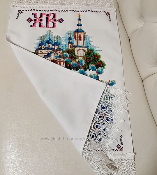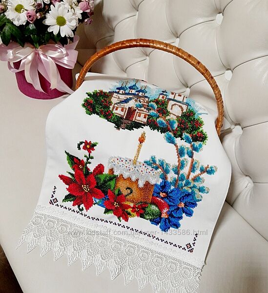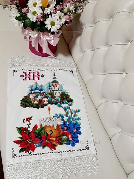 Великодній рушник вишитий бісером, тканина габардин, оздоблений мережкою та підшитий.Другие объявления продавца