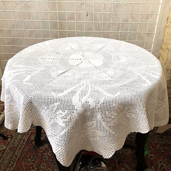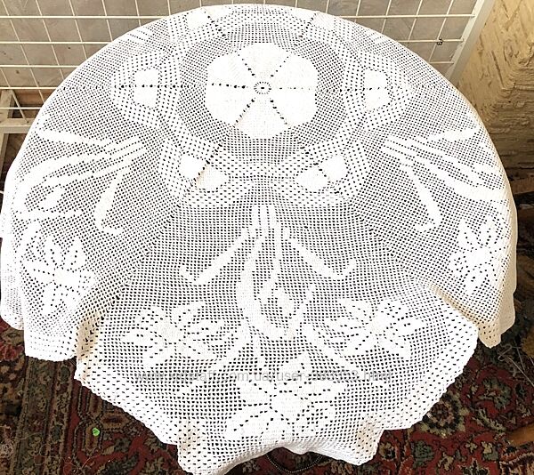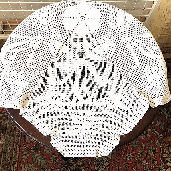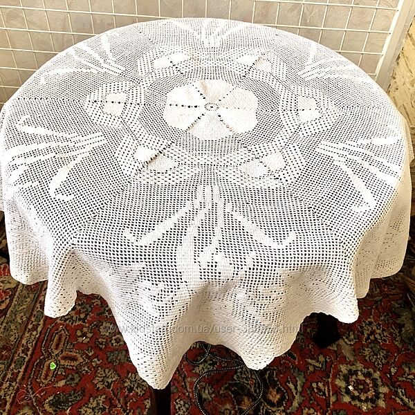 Плотная тяжелая скатерть филейного кружева крючком -ручная работа Саатерть состоит из 6 клиньев филейного кружева украшенных нарциссами Размер— диаметр 110 см Для ценителей ручной работы Декора столешницы или в подарок близкому человекуДругие объявления продавца