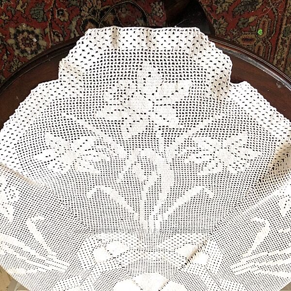 Скатерть ручной работы филейного кружева-наруиссы-110 см