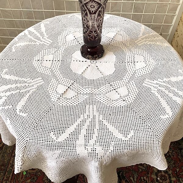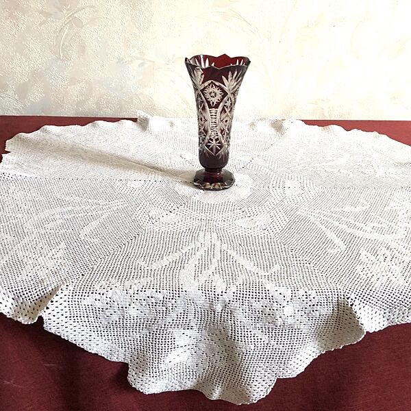Подробное описание: Скатерть ручной работы филейного кружева-наруиссы-110 см